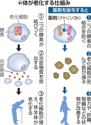 【速報】『老化細胞を体から除去できる薬』見つかる。不老不死実現か