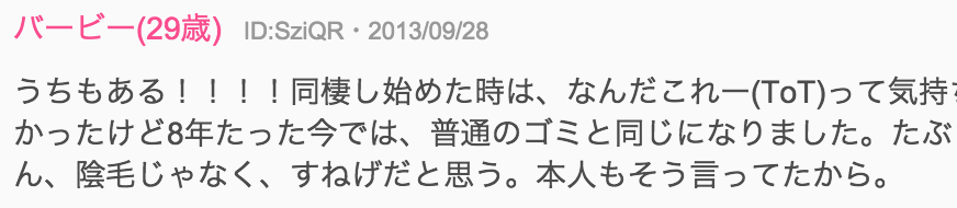 嫌いな奴の陰毛が駄目なのはわかる
