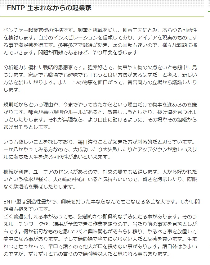 最初に紹介されたものではINFPだったけど。