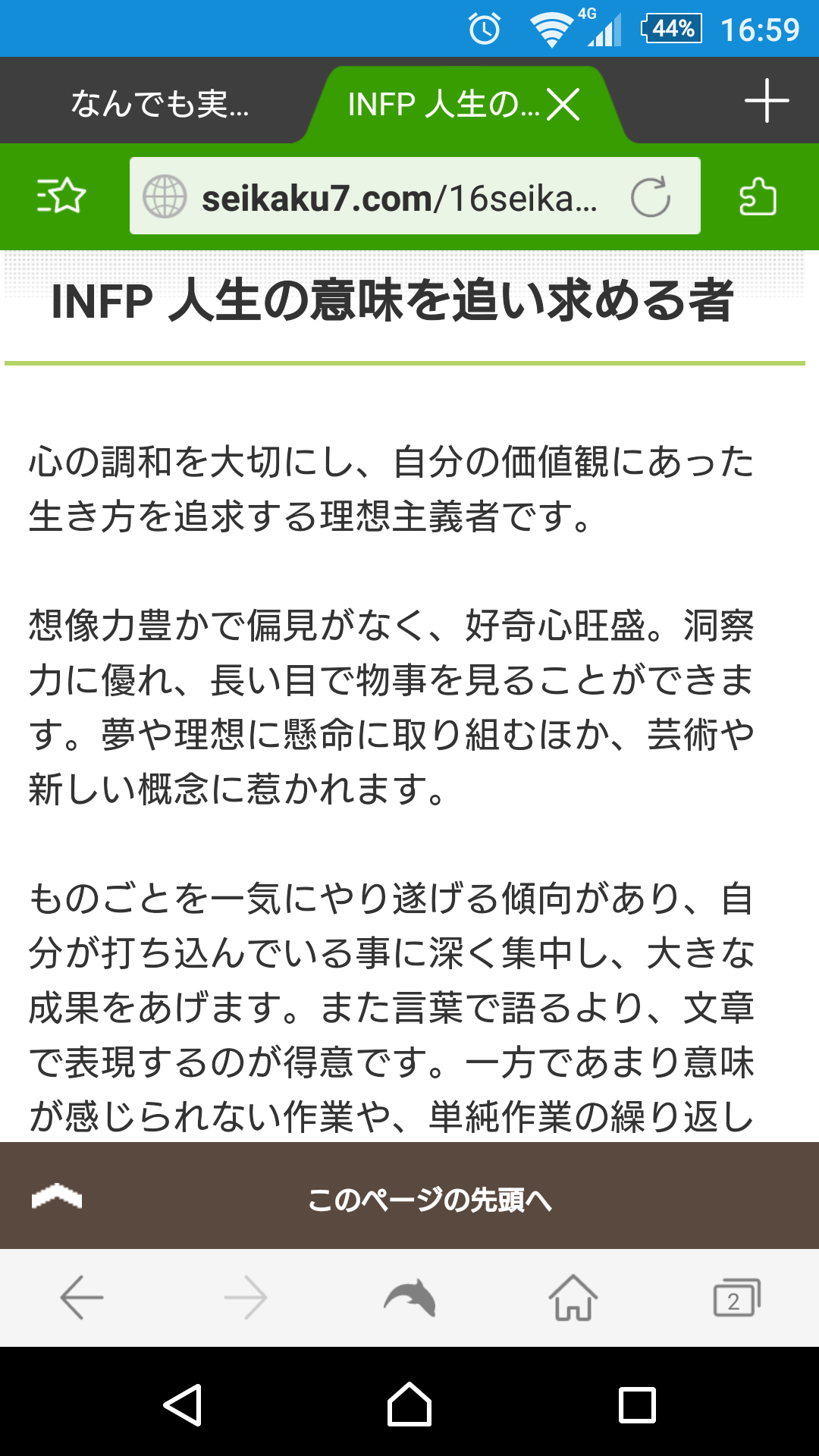 全くその通りで驚いた。INFPというのはハズレではないのだろうな…