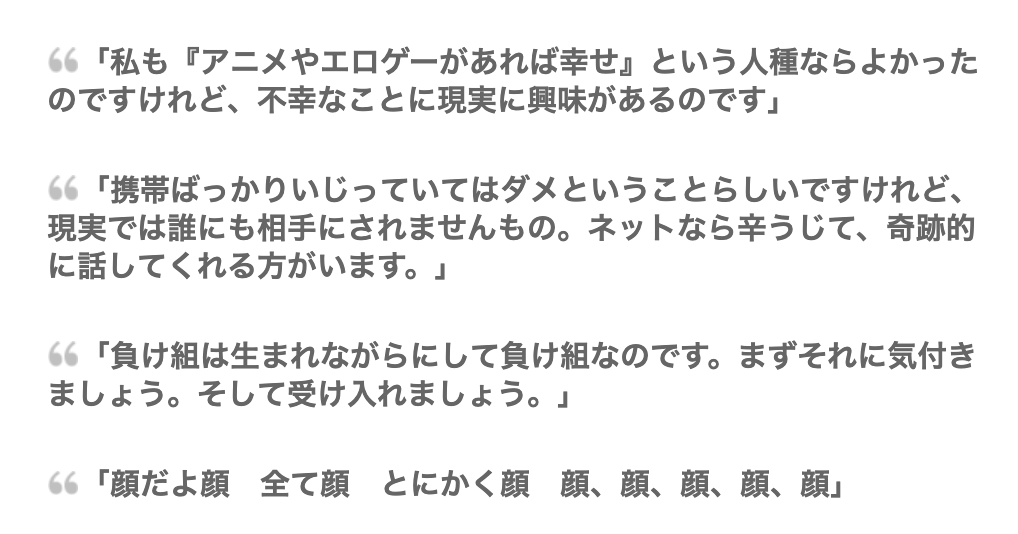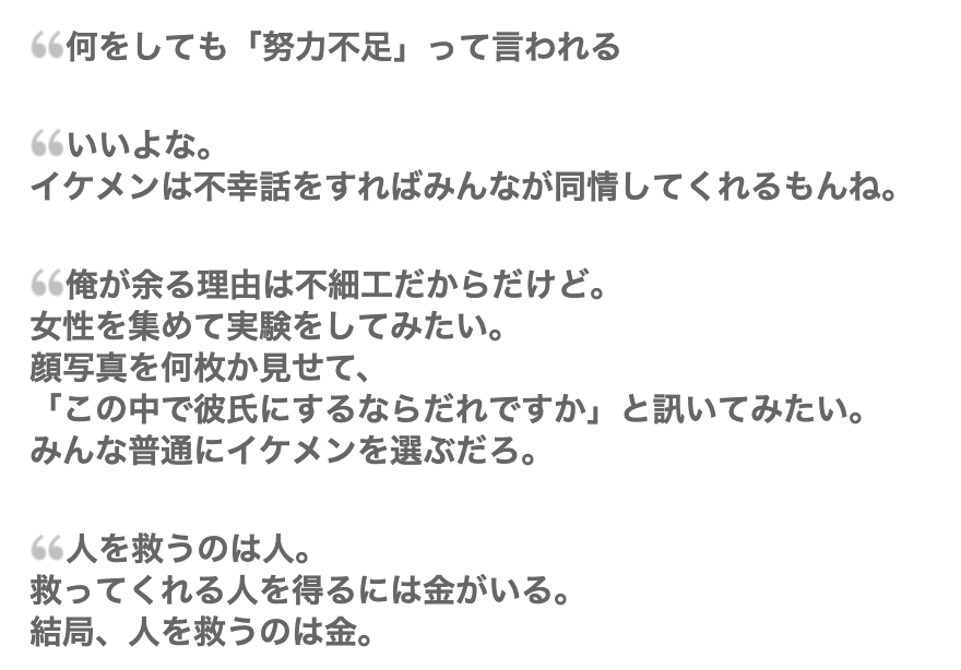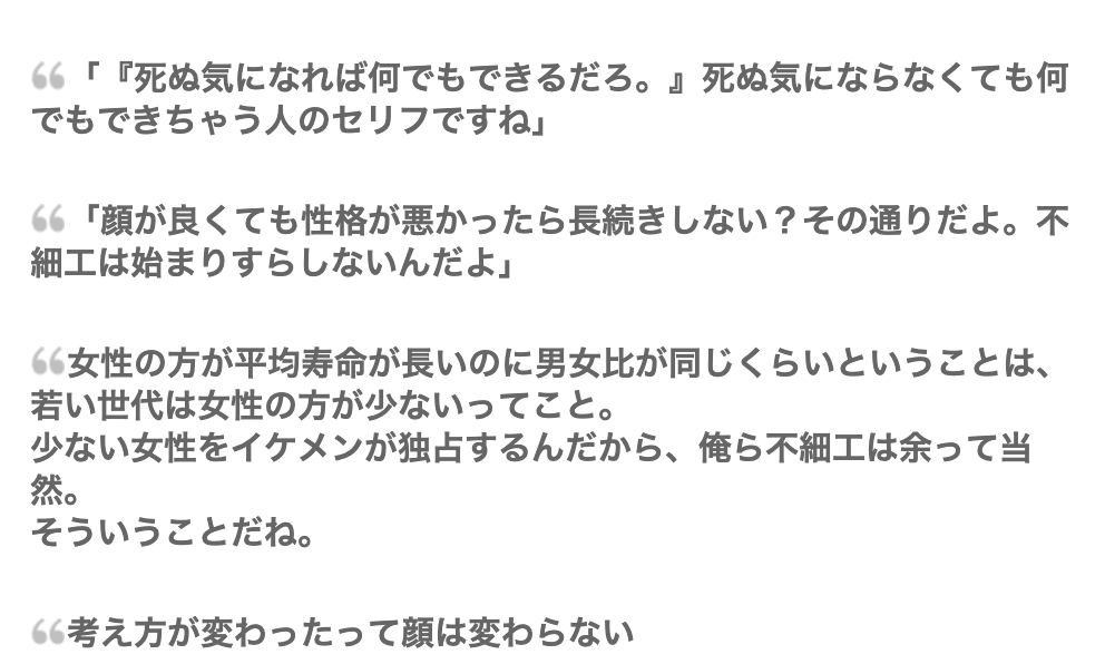 加藤は、そこらへんの非モテと少し違うなと思った言葉が、個人的にけっこう刺さった。