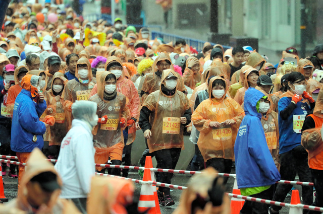歩行者すれすれをハアハア言いながら走り抜けるランナー多数