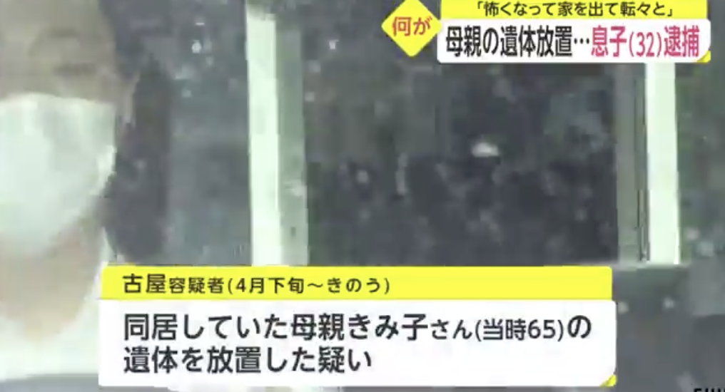 東京・八王子市の自宅で母親の遺体を放置した疑いで、32歳の息子が逮捕された。