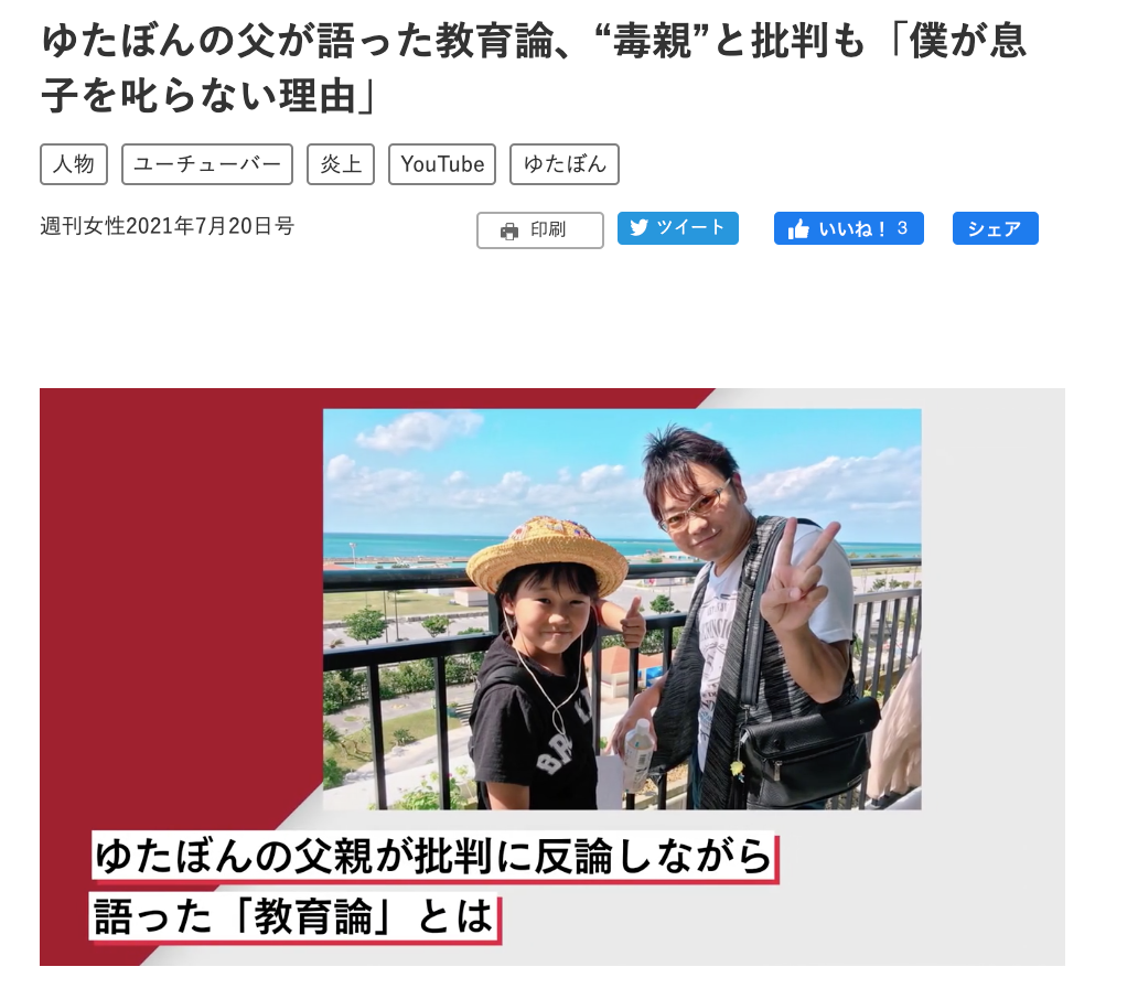 その後の対応も、社会じゃまだバイトも出来ない年齢なんだから、今のゆたぼんの年齢で出来る事を親としてちゃんとサポートしてる。良い親だよ。