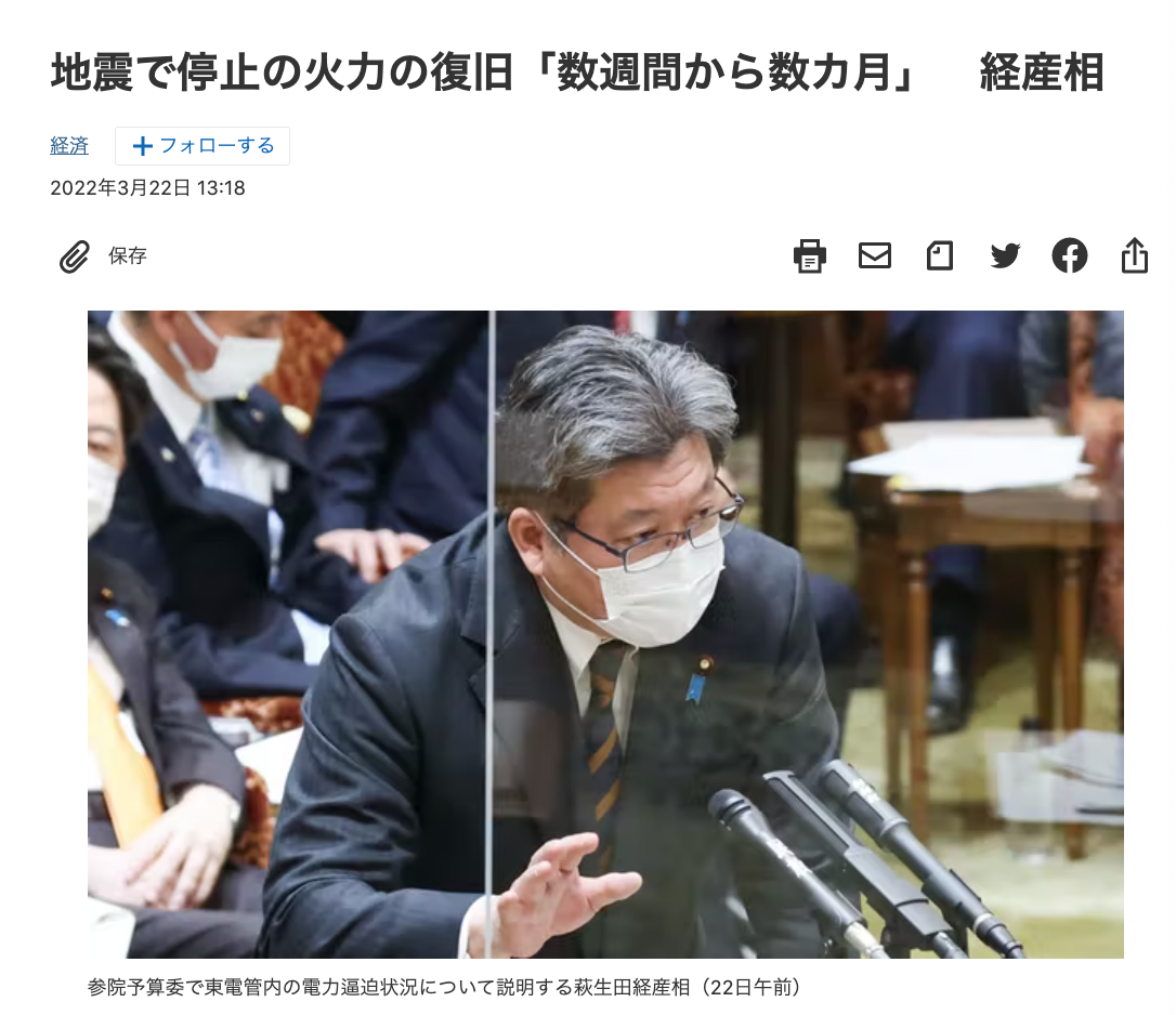 古い火力発電の改修が出来ずに稼働停止ってのが最近多かったのに地震が止めを刺した