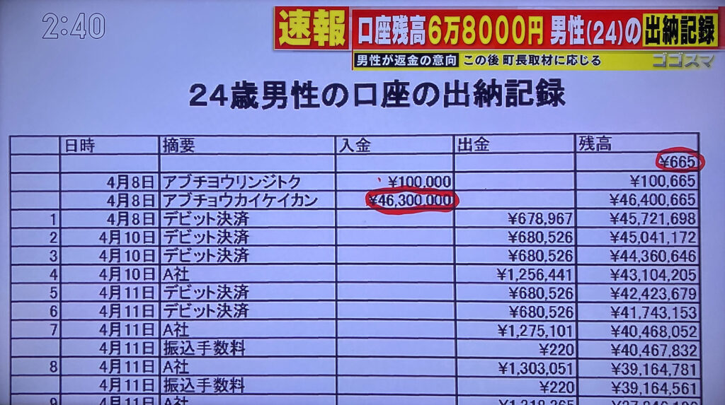 偶然、多額の給付金の誤送金をネコババした犯人。