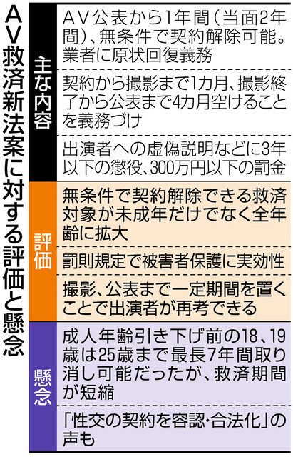 「AVの発売から原則1年は無条件で契約を解除でき、契約成立から撮影まで1カ月、撮影から発売まで4カ月の期間を置かなければならない」
