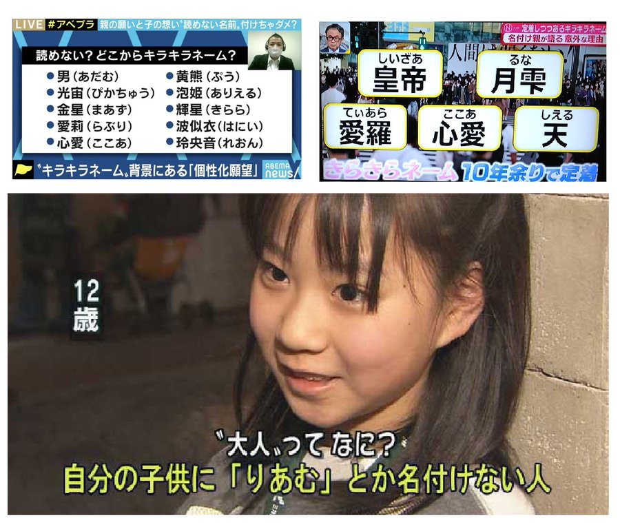 ただ、明治安田生命が毎年発表している名前ランキングで、最近上位にランクインしている名前見ても読めない名前が多いなって感じるから