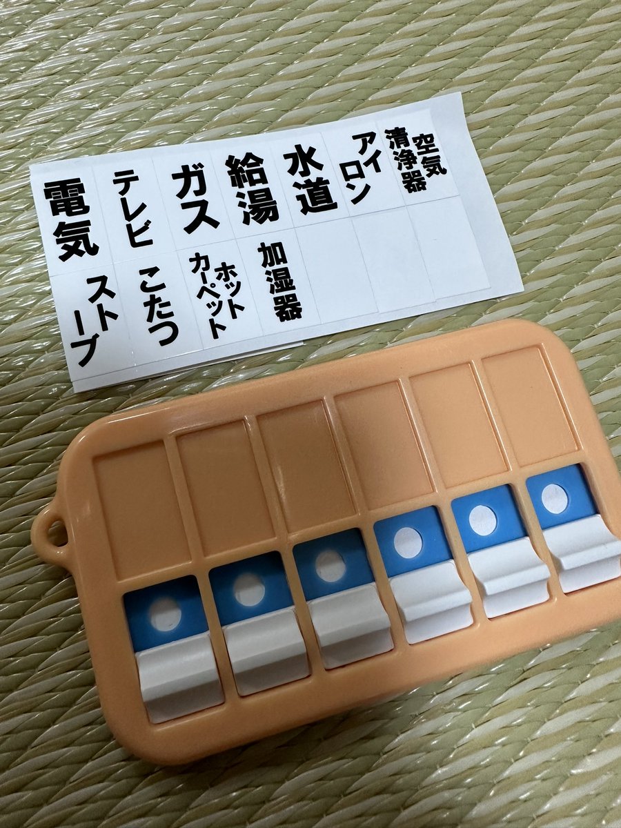 もしかしたらアプリでもできるじゃんと思いがちだけど、スマホ持ってスマホつけてアプリ探してアプリ起動しての手順が無理になるから、こういうのは物理的にキーホルダーとして鍵と一緒に玄関にあるのがいいね