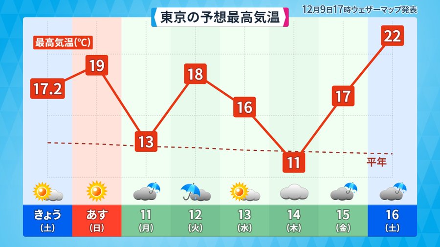 12/16が22℃???クリスマスまで10日切ってるのよ???