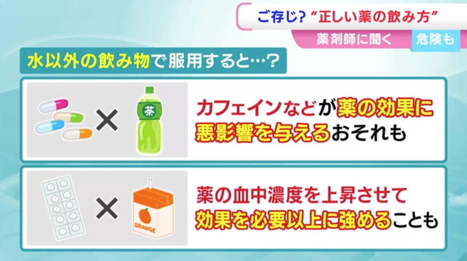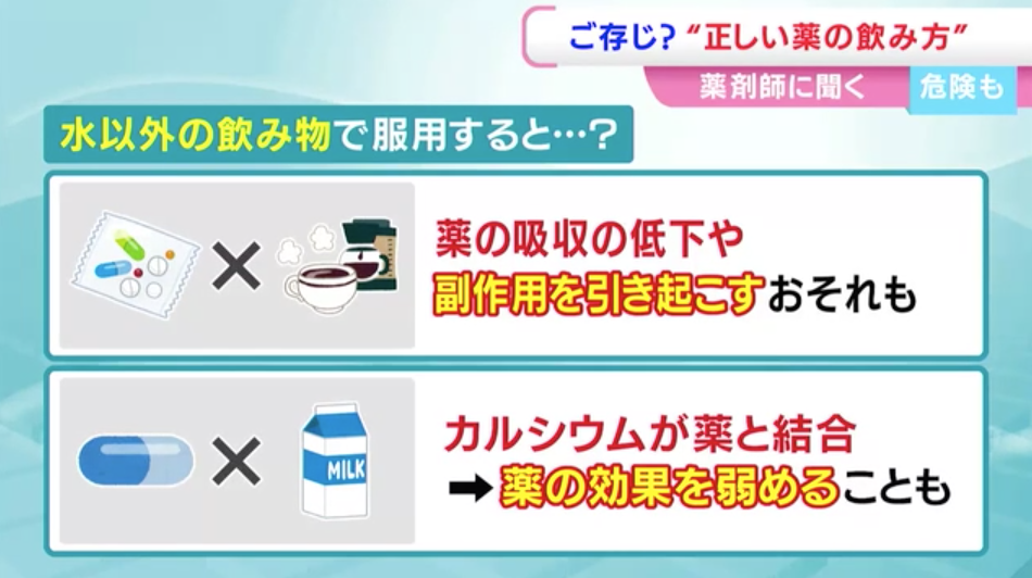 「もともと水で飲むことを前提に作られています。薬を飲むときは必ずお水または白湯で飲むっていうのが、まず、大事なことになります」