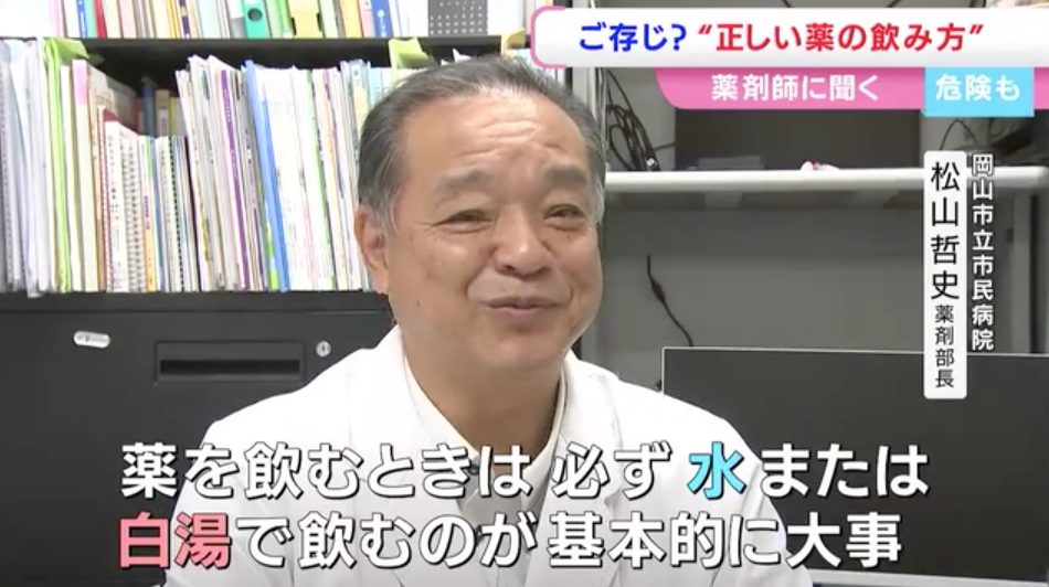岡山市立市民病院の薬剤部長・松山哲史さんは、薬は開発段階で一般的に想定されている飲み物があるといいます。