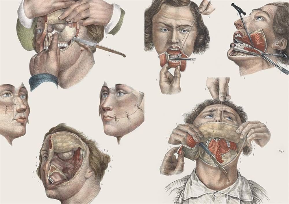 この本を見ると当時の医者は手術中、麻酔なしで患者の身体を切り開き、骨を砕き、脚を切断していたことがわかる。19世紀のロンドンの病院では手術を受けた患者の大多数は術後ショック、出血多量、感染症により死亡し、その死亡率は80%にも上ったという。