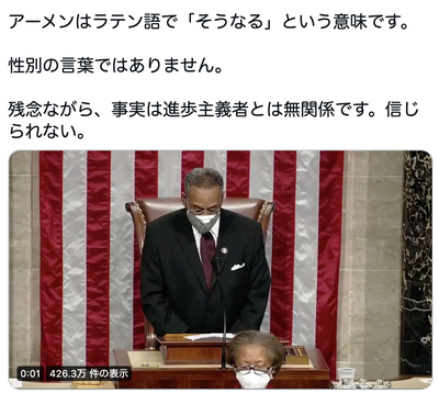 「アーメンは性差別。アーウィーメンも付け加えよう」→元はヘブライ語で英語の”MEN”とは無関係