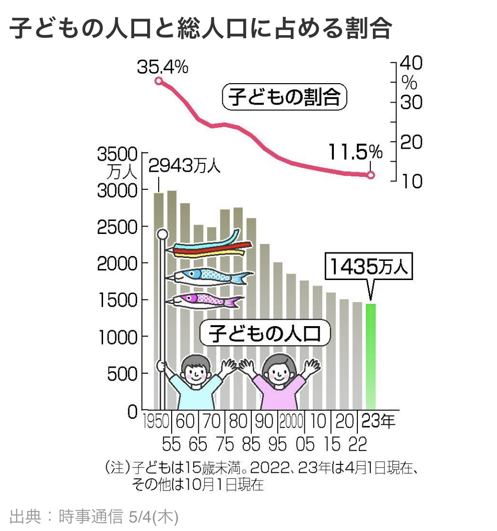 【緊急】子どもの数、1435万人… 42年連続減少で過去最低更新